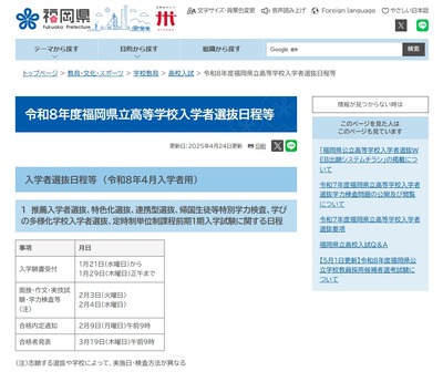 なお、各学校の募集定員については、6月更新予定の「求める生徒像・選抜方法」に掲載予定。