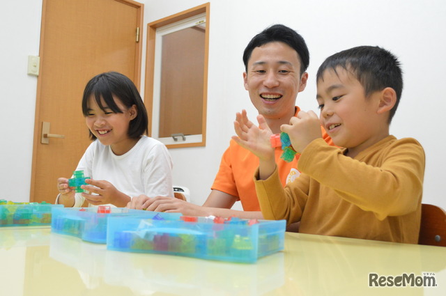 また、指先を使うことも重視しています。お子さんの発達を考えたときに、たとえば「ものを持つ」という動作ひとつとっても、初めは細かいものを掌全体でつかんでいたものが、だんだん指先で持てるようになっていきます。指先が細かく使えるようになるほど、発語発声というアウトプットもできるようになるということがわかっています。ですので、折り紙を折ったり、積み木を重ねたり、紐でつないでいったりというようなことを低年齢のお子様には多く行います。