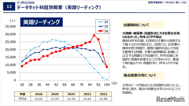 --「英語リーディング」は平均点が5点ほど上がりました。