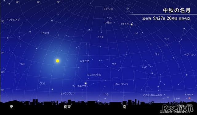 2015年9月27日20時頃の東京の空と「中秋の名月」 (c) 国立天文台