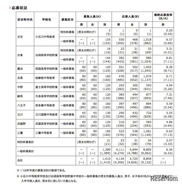【中学受験2016】都立中高一貫応募状況…小石川6.57倍、最高倍率は両国8.36倍 2枚目の写真・画像