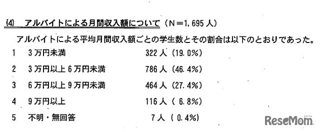 ●京都ブラックバイト対策協議会「学生アルバイトの実態に関するアンケート」:アルバイトによる月間収入額