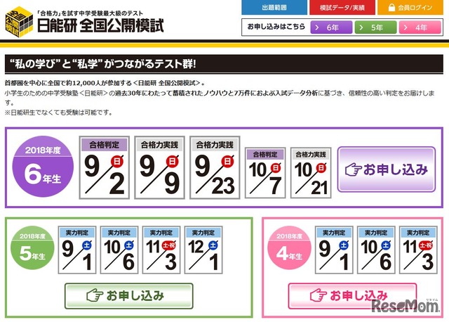 日能研…6年「合格判定テスト」9/2、4-5年「実力判定テスト」9/1 1枚目の写真・画像