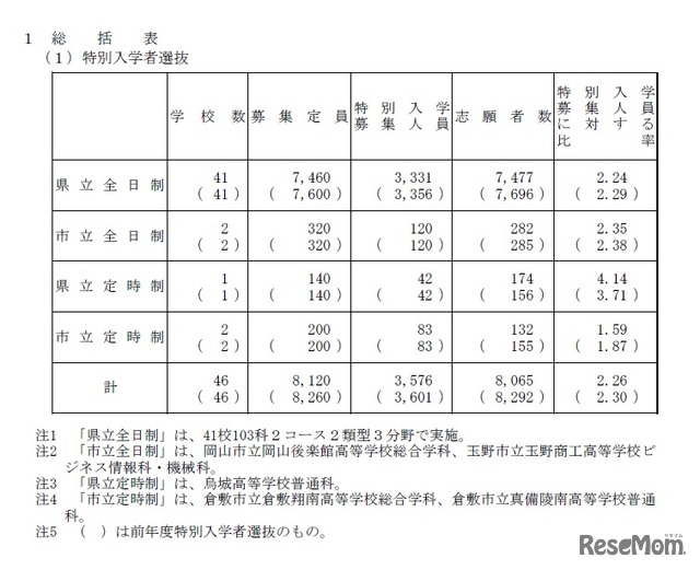 【高校受験2019】岡山県公立高、特別入学者選抜志願状況(確定)岡山一宮(理数)3.13倍など 2枚目の写真・画像