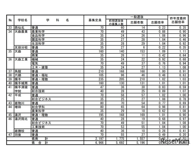 【高校受験2020】秋田県公立高入試、一般選抜志願状況(確定)秋田(普通・理数)1.11倍 5枚目の写真・画像