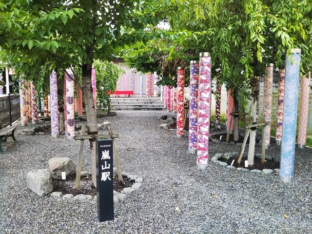 「鬼滅の刃 京ノ御仕事 弐」嵐電・嵐山駅 キモノフォレストに「鬼滅の刃」仕様のキモノポール登場(C)吾峠呼世晴/集英社・アニプレックス・ufotable