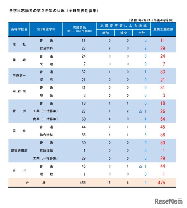 【高校受験2021】山梨県公立高、後期募集の志願状況(確定)甲府南(理数)1.36倍 6枚目の写真・画像