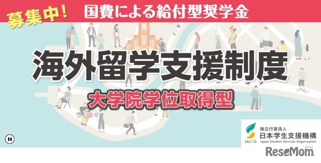 日本学生支援機構「2022年度海外留学支援制度(大学院学位取得型)」