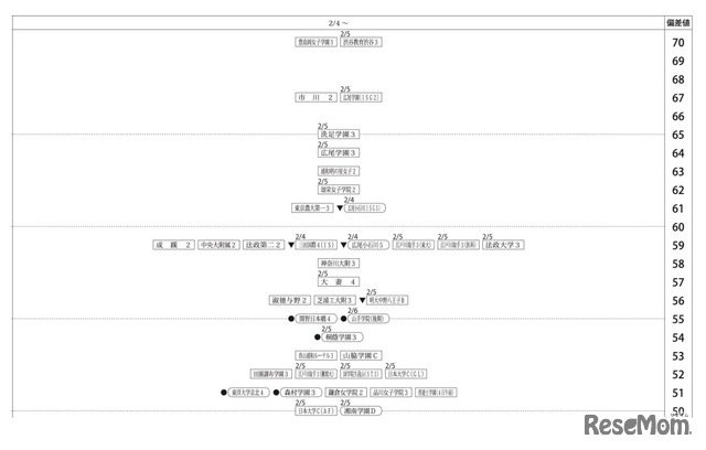 「第2回合不合判定テスト」偏差値一覧(2月4日以降)【女子】