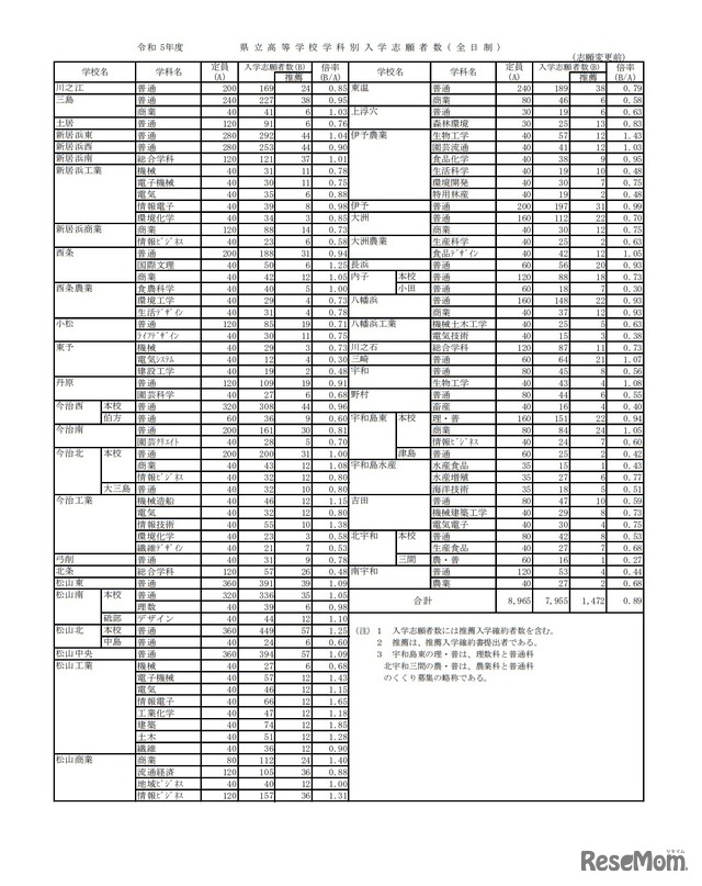 【高校受験2023】愛媛県立高の志願状況(2/21時点)松山東1.09倍 1枚目の写真・画像
