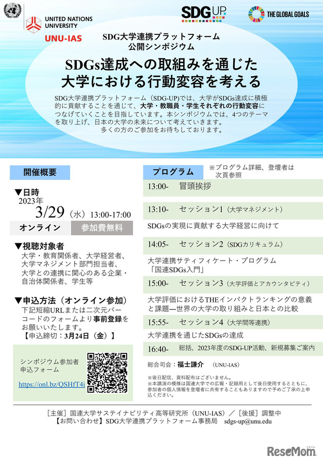 SDG-UP公開シンポ「大学における行動変容を考える」3/29 1枚目の写真・画像