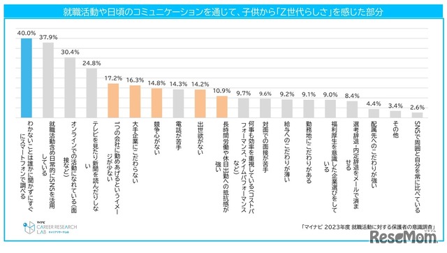 就職活動や日ごろのコミュニケーションを通じて、子供から「Z世代らしさ」を感じた部分