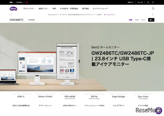 アイケアモニターGWシリーズ新製品「GW2486TC」