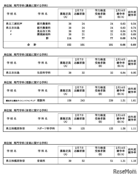 令和7年度神奈川県公立高等学校入学者選抜一般募集共通選抜等学力検査等受検状況