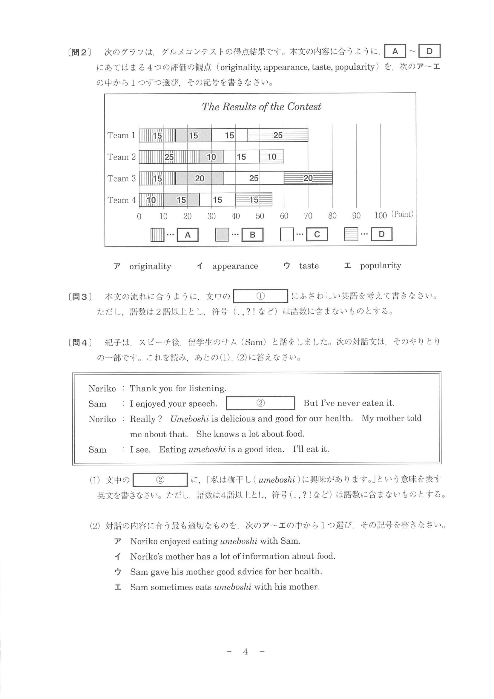 2020年度 和歌山県 公立高校入試[標準問題 英語・問題]6/10