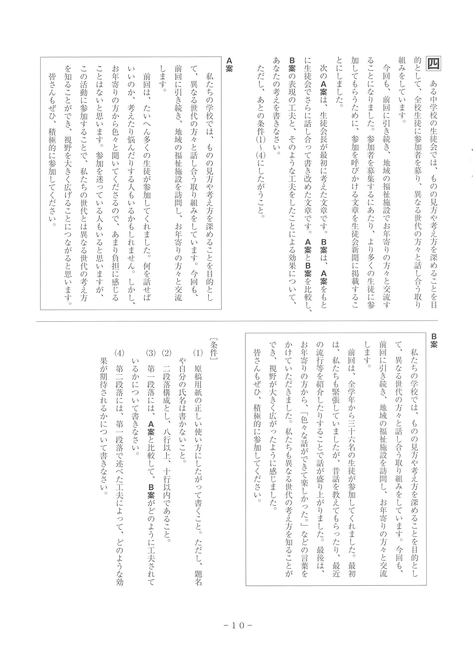 2020年度 和歌山県 公立高校入試[標準問題 国語・問題]7/10