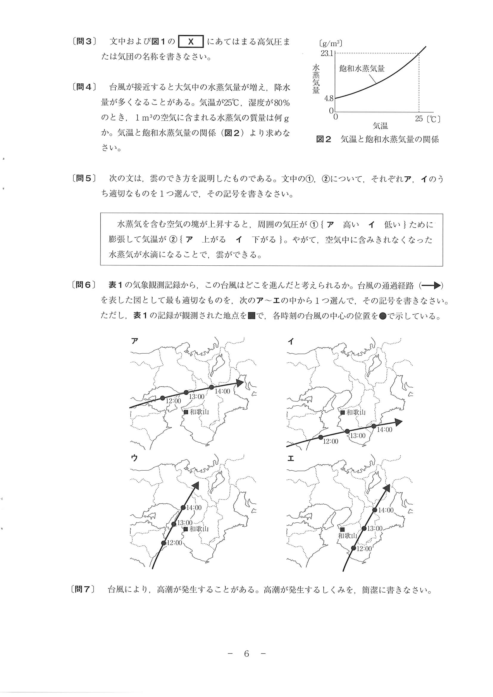 2020年度 和歌山県 公立高校入試[標準問題 理科・問題]6/10