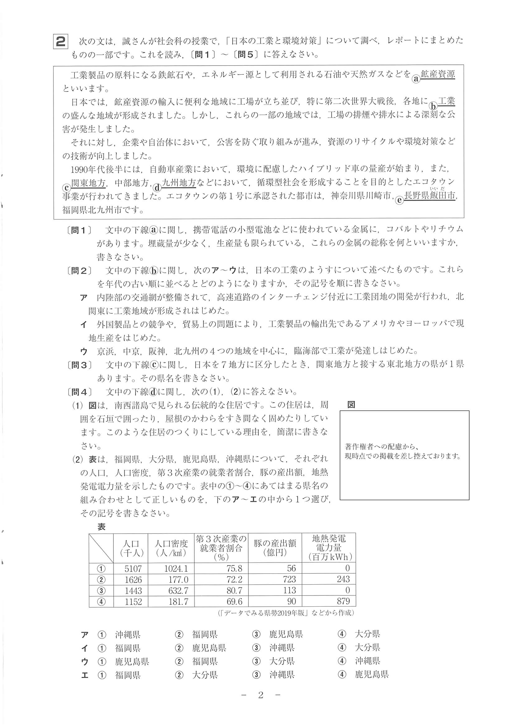 2020年度 和歌山県 公立高校入試[標準問題 社会・問題]2/7