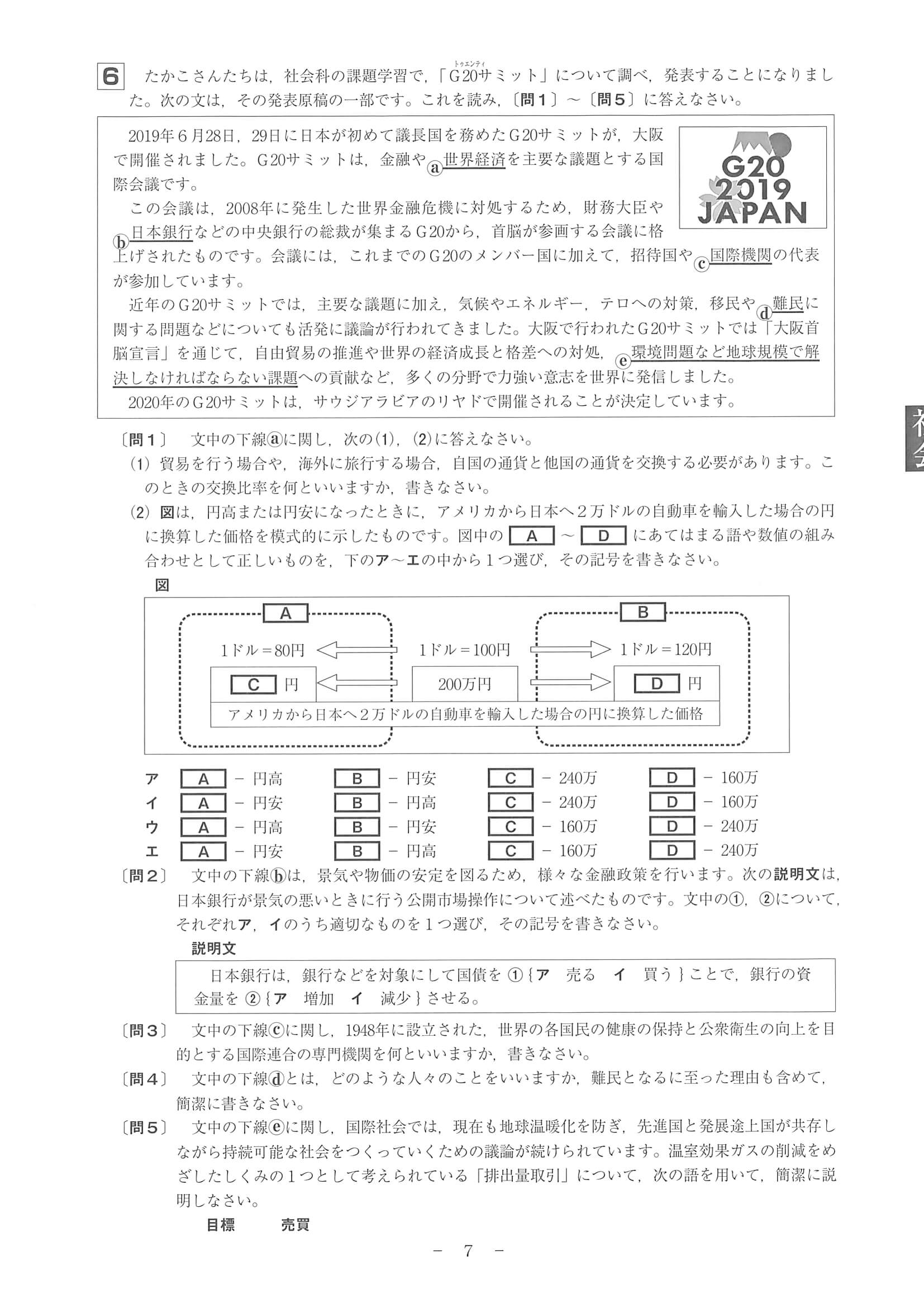 2020年度 和歌山県 公立高校入試[標準問題 社会・問題]7/7