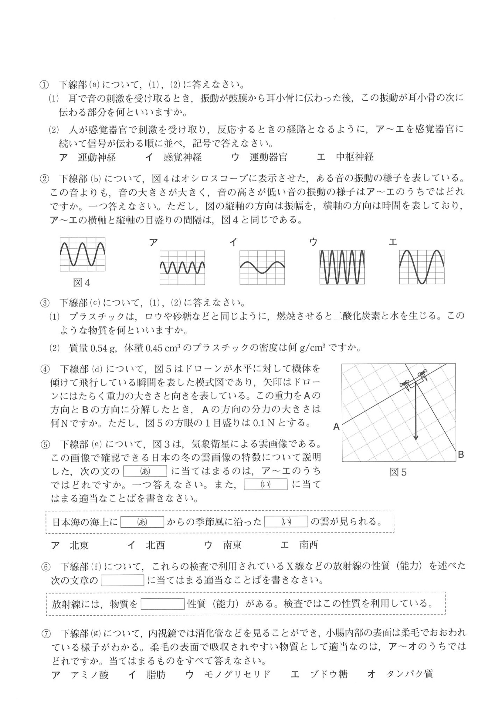 2019年度 岡山県 公立高校入試[第1期 理科・問題]2/6
