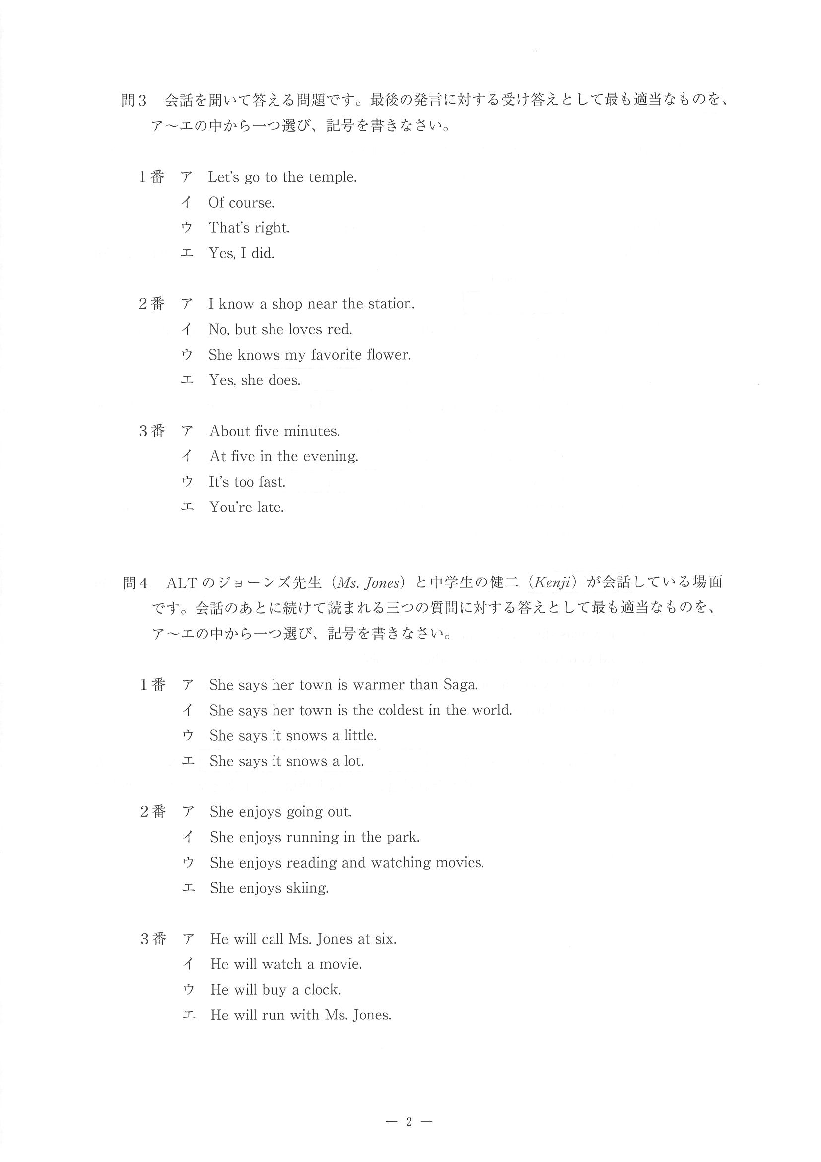 2018年度 佐賀県 公立高校入試[一般選抜 英語・問題]3/11