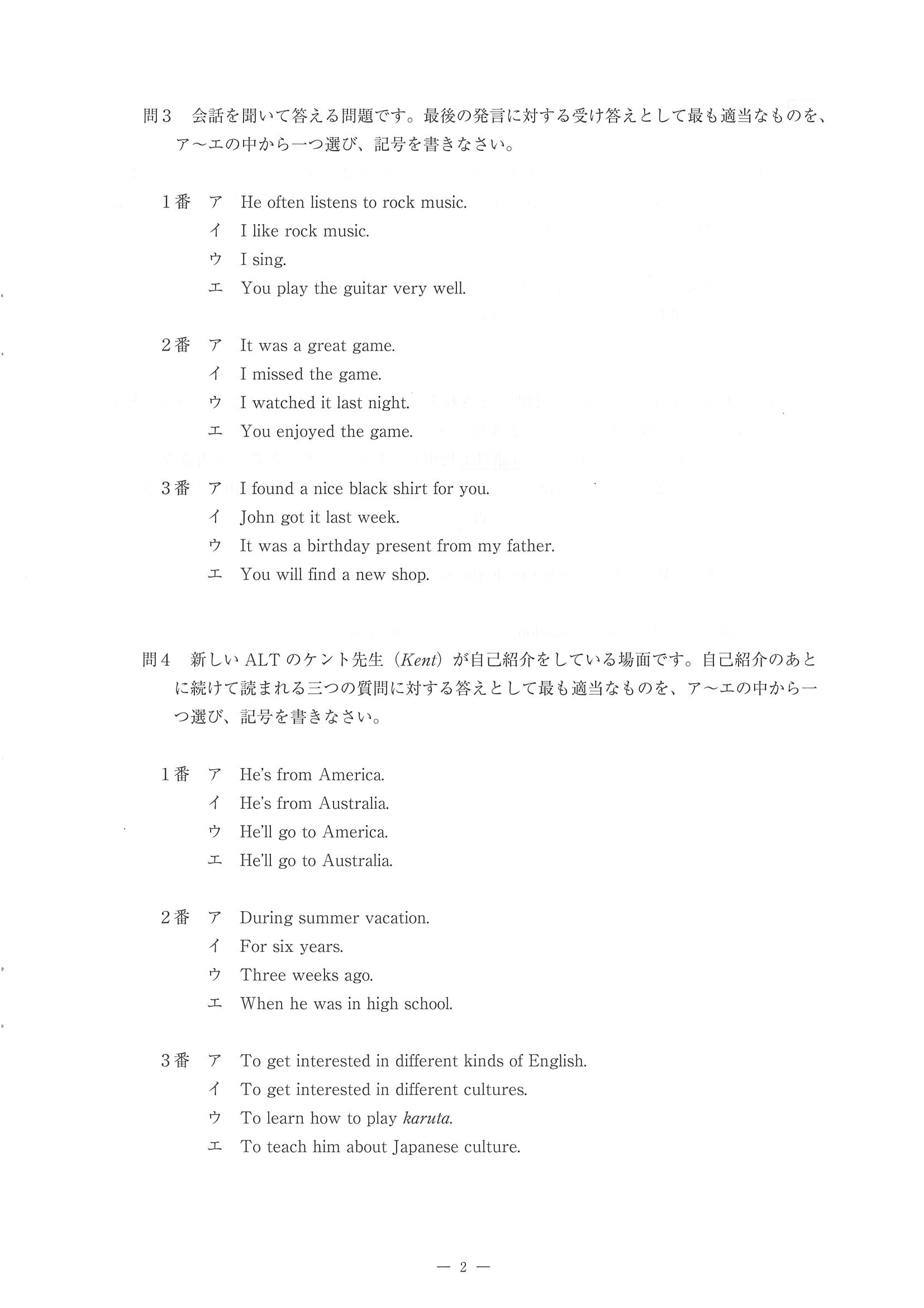 2018年度 佐賀県 公立高校入試[特色選抜 英語・問題]3/10