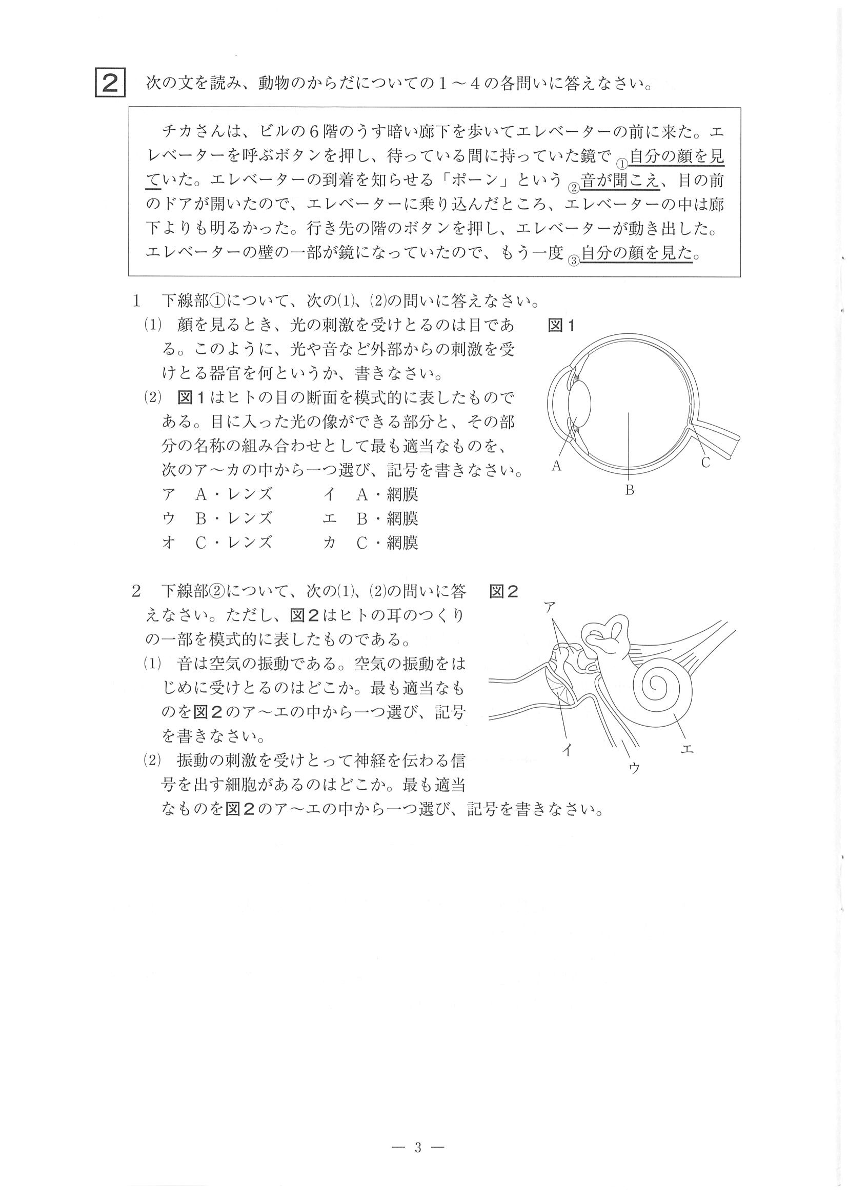 2019年度 佐賀県 公立高校入試[一般選抜 理科・問題]3/14