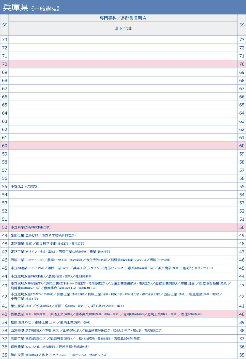 高校偏差値 兵庫県 公立校 一般選抜(専門学科)