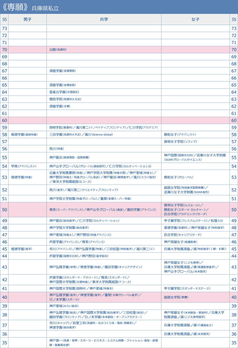 「伸学工房」によるデータに基づく。コース新設や改編など、次年度入試の変更点は判明分を反映している。統廃合および募集停止の学校(学科/コース)名や偏差値が表示されている場合がある。