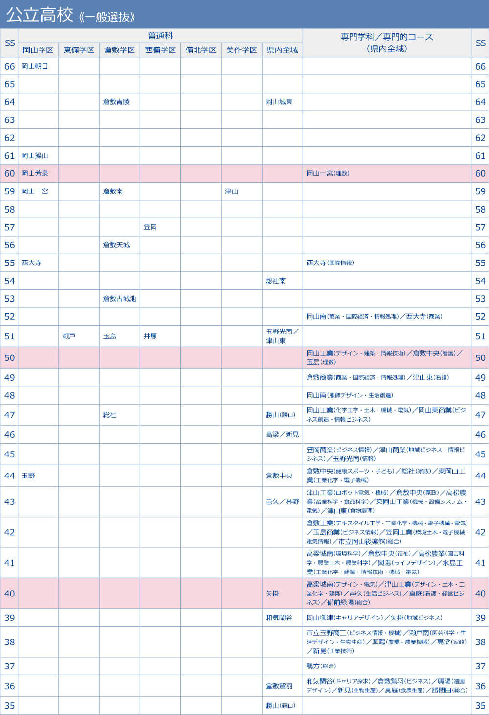 高校偏差値 岡山県 公立校 一般選抜