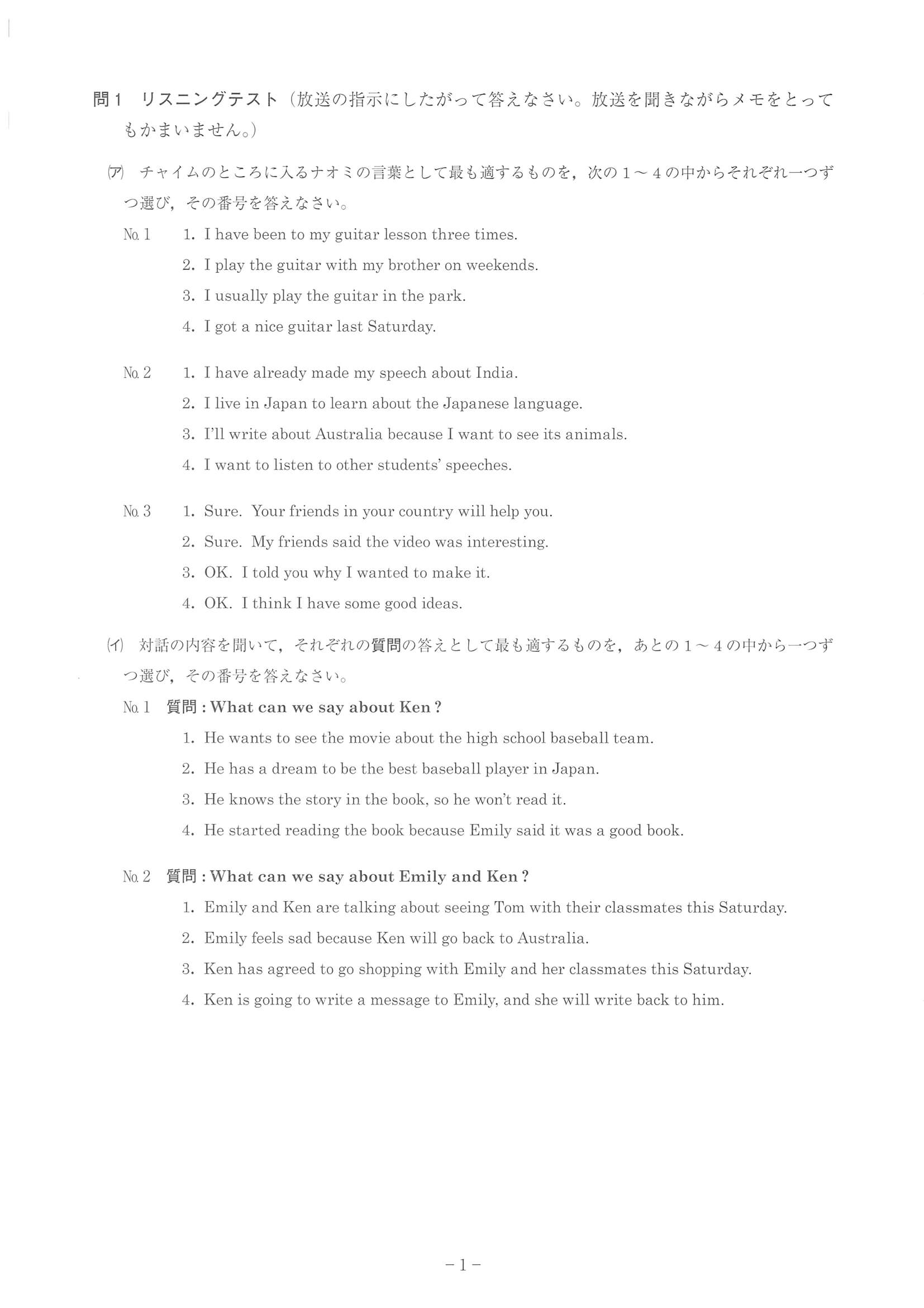 2022年度 神奈川県公立高校入試[標準問題 英語・問題]3/16