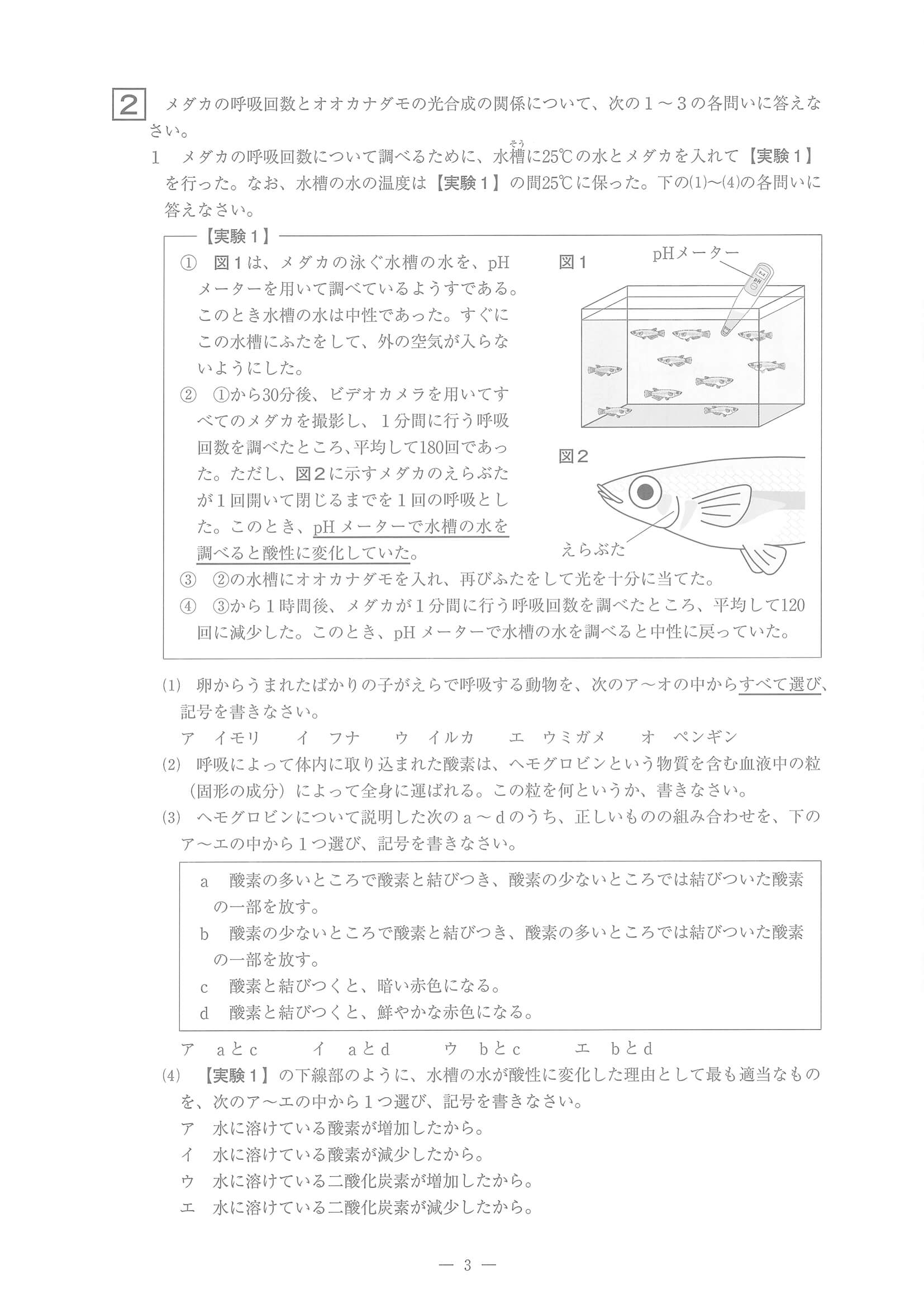 2023年度 佐賀県公立高校入試[一般選抜 理科・問題]3/14